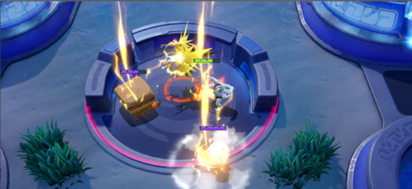 試合終了直前になると、スタジアムの中央のレジェンドピットにサンダーが現れる。サンダーを倒すと、味方全員に大量のエオスエナジーが手に入るだけでなく、サンダーが雷撃で援護してくれるので、一気に大量ゴールを狙うことが可能になる。サンダーを倒したチームがより有利にバトルを進めることができるのだ!