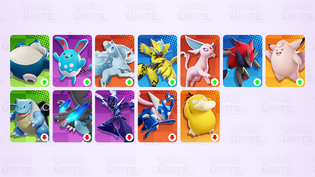 ユナイトバトルのバランスを調整するため、ポケモンの能力やわざの内容を一部変更いたしました。