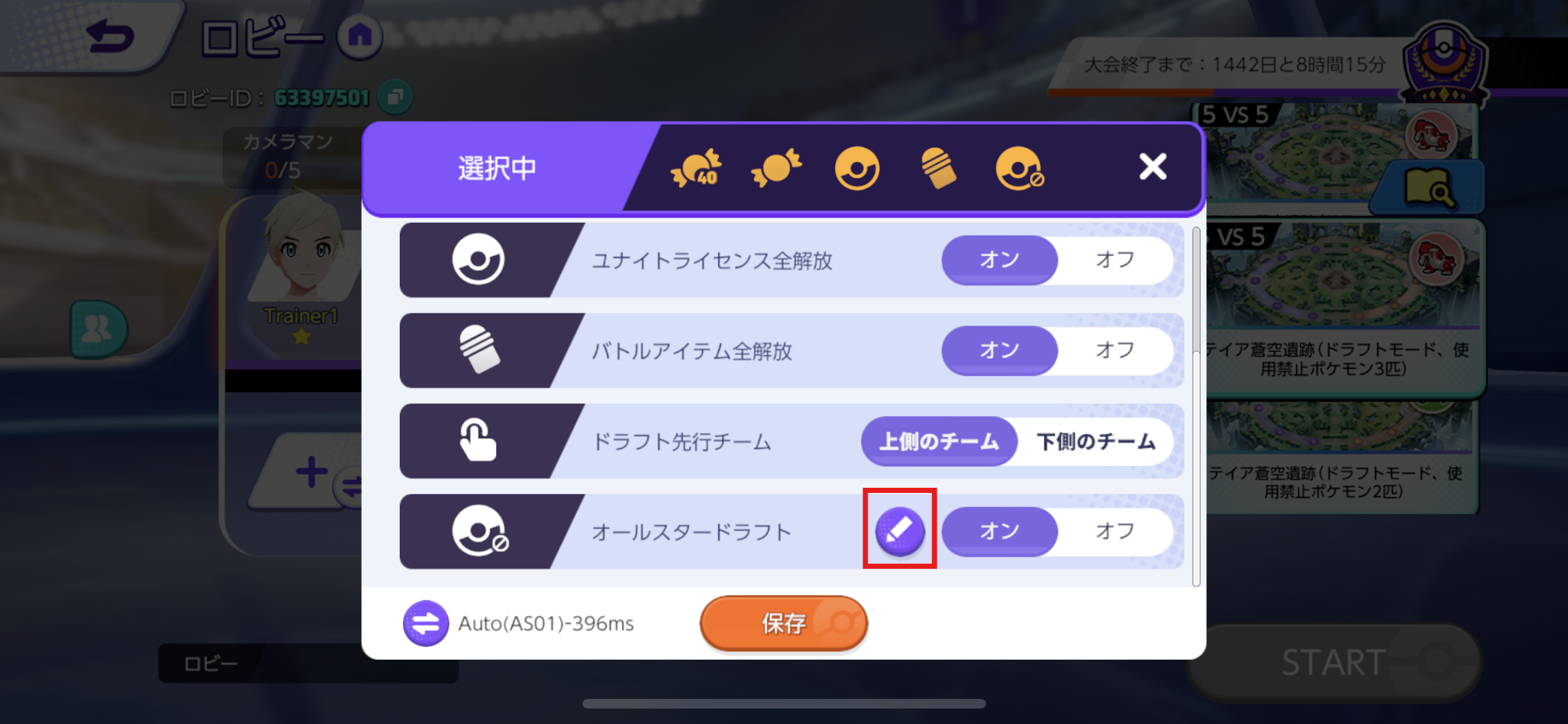 選択禁止リストの編集: バトルのホストに限り、選択禁止にするポケモンを手動で変更・管理できます。