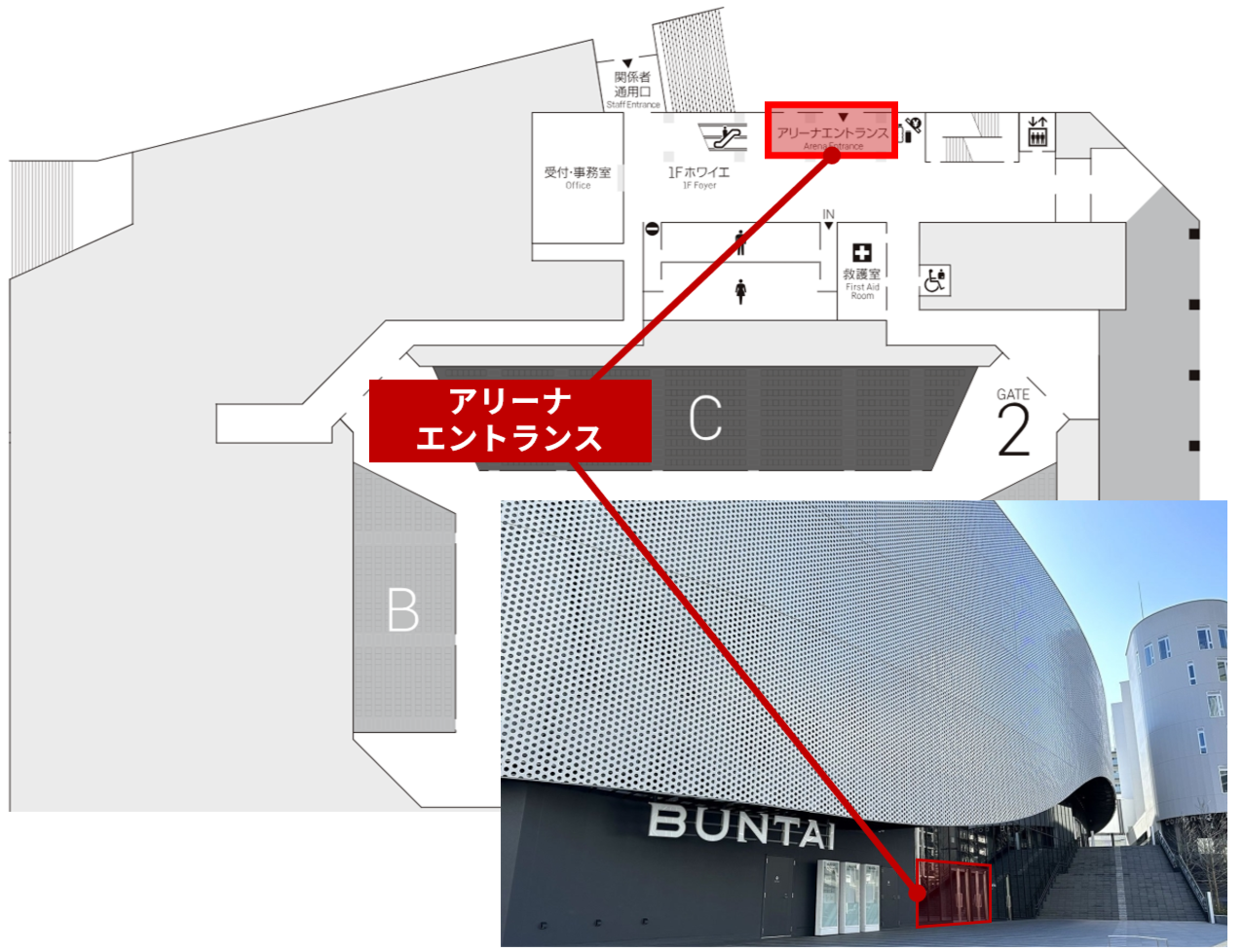・右記会場のアリーナエントランスに設置した受付へ、本状をご持参の上ご来場ください。